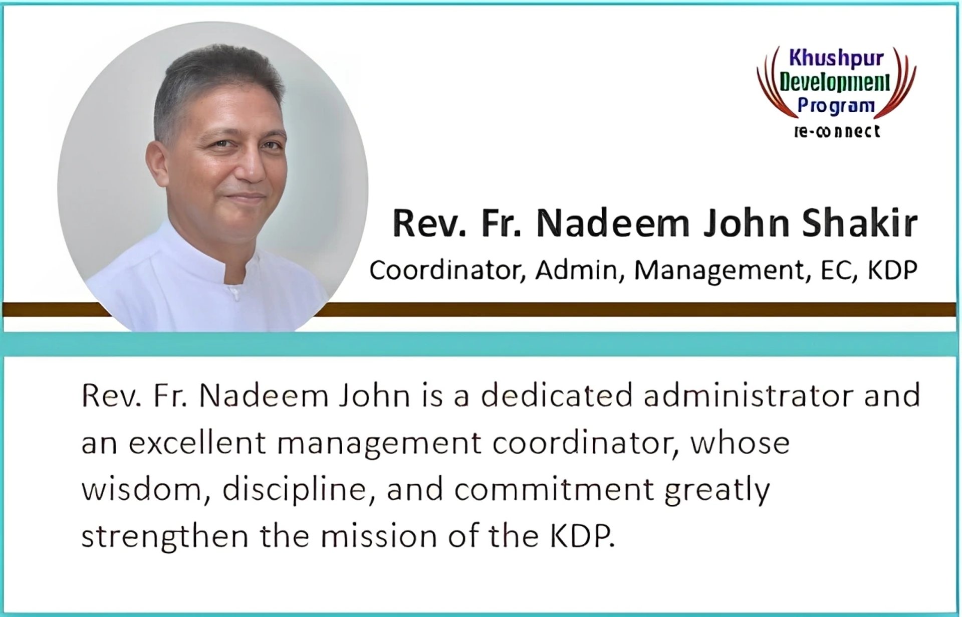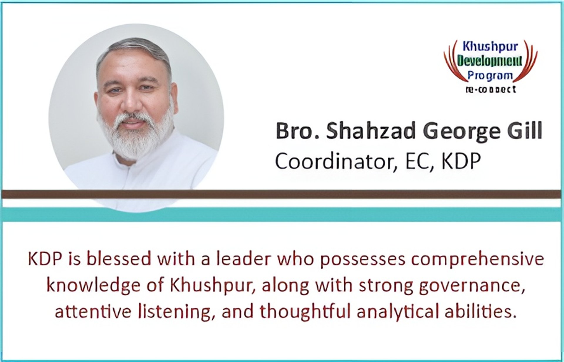 Khushpur holds a very special place in the history of the Catholic Church in Pakistan. It is not only a village of faith but also a cradle of leadership, service, and hope for countless communities across the country. As Chairman and Chief Patron of the Khushpur Development Program (KDP), I deeply recognize the responsibility we share to safeguard its legacy and to prepare it for the challenges and opportunities of today.